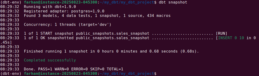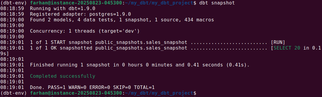 3. Once configured, run the snapshot with: dbt snapshot