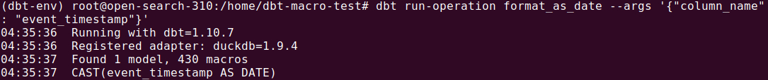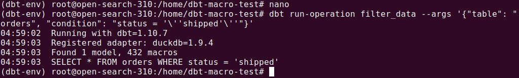 For more comprehensive testing, you can use dbt’s built-in data and unit testing functionality. If the macro generates invalid SQL or doesn’t behave as expected, check the compiled SQL for clues about the issue.