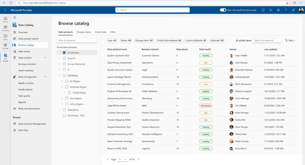 Governance domains are the backbone of Purview’s federated governance model. They distribute ownership and give users a way to navigate the catalog without being overwhelmed by the full data estate. A well-designed domain structure makes discovery easier, aligns responsibilities with business expertise, and reduces governance bottlenecks.
